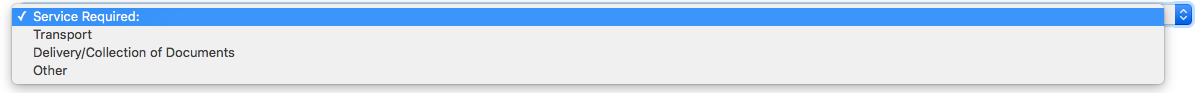 Services Required: This is a drop down menu. You are required to click on it and select one of the following options